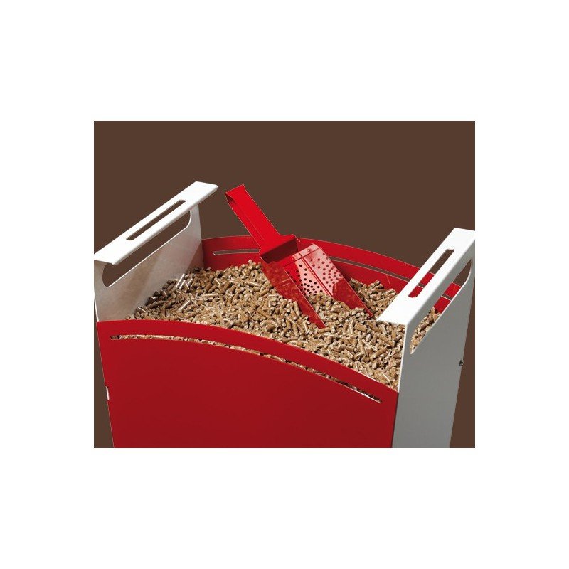 J’adore le design moderne de ce stockage. Il est très pratique avec son couvercle pivotant et permet de stocker proprement une bonne quantité de pellets.